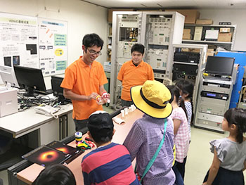 大学院理工学研究科技術部は、第90回地域連携活動として、8月10日に国立天文台VERA入来観測局(鹿児島県薩摩川内市入来町八重山高原)で行われた「八重山高原星物語2019」に参加しました。「八重山高原星物語」は、八重山高原星物語実行委員会が毎年夏に実施しているイベントです。宇宙観測施設の見学や科学実験などを通し、八重山の自然や最先端の科学に触れることができます。