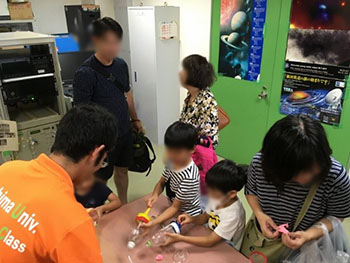 子どもたちと理科実験。理工学研究科技術部が「八重山高原星物語2019」にブースを出展しました