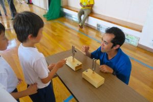 今回は、技術部から職員6名が出向き、日置市立妙円寺小学校3年生3クラス84名の児童に対して、音に関するテーマ「音のフシギ」と「音であそぼう」を実施しました。