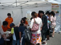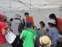 このイベントでは、鹿児島大学の学生だけでなく他大学の学生チームや鹿児島県内の様々な団体からの出展があり、多くの学生ボランティアが参加していました。また、電波望遠鏡を動かしたり、実際に登って見学するツアーが行われ、炎天下での開催となりましたが子どもたちは元気にブースを周り、イベントを楽しんでいました。技術部のブースでも、子どもたちは驚きながら喜んでイクラ作りをしていました。学生ボランティアを入れての出前授業は初めての試みでしたが、みんなよく頑張ってくれ、子どもたちに楽しんでもらうことができました。
