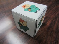 続いて、「キュービックパズルをつくろう」を実施しました。キュービックパズルとは、厚紙で作った立方体の絵合わせパズルです。ポップアップカードに比べ簡単に作製することができました。早速、子どもたちは完成したパズルを使い、絵合わせに挑戦していました。絵合わせの得意不得意がありましたが、とても楽しそうに取り組んでいました。