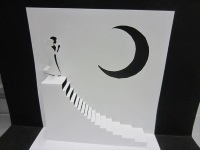 まず、「ポップアップカードをつくろう」を実施しました。ポップアップカードとは、折り畳まれたカードを開いたときに、立体的に立ち上がるものです。今回は、図工の教科書に載っているものよりも難しいものにチャレンジしました。子どもたちは切り込みや折り曲げに苦戦していましたが、全員がポップアップカードを作製することができました。
